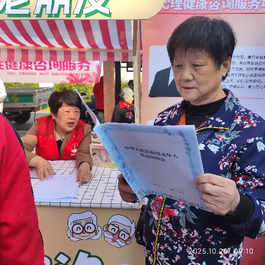 10月28日一早,广益街道春影社区居委会门前已是欢声笑语的海洋。理发、糕点派送、健康体检……每个便民摊位前,都簇拥着兴致勃勃的老年人。在这片热闹中,民政的服务点前显得最为特别——这里没有实物的馈赠,提供的是权益的铠甲与心理的倾听。起初,人流路过服务点多是匆匆而过,有些会好奇地张望,却不近距离驻足。工作人员理解那份小心翼翼的回避——他们不是没有困惑,只是生怕被轻易贴上“权益受侵害”“心理有问题”的标签。