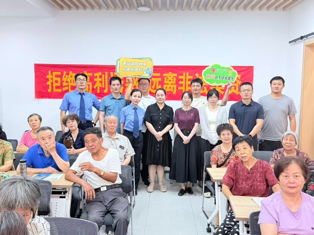 活动中,无锡市委金融办、宜兴市金融服务中心以《远离非法集资 安享幸福晚年》为主题,深入浅出地揭示了非法集资的违法性、社会危害性及常见表现形式,并通过互动问答形式解答疑问,帮助老年朋友识别骗局陷阱,增强自我保护能力。宜兴市检察院工作人员通过《银发防非反诈指南》宣讲,剖析了近期多发的养老诈骗、虚假投资理财等典型案例,以案说法,既传授了实用的防骗技巧,也明确了权益受损后的法律维权途径,为老年人安享幸福晚年提供了法律保障。科发农贷公司聚焦信用建设,强调“诚信借贷,珍视信用”的重要性,提醒群众警惕网络贷款陷阱,引导居民通过正规金融机构办理业务,守护好自己的“钱袋子”。