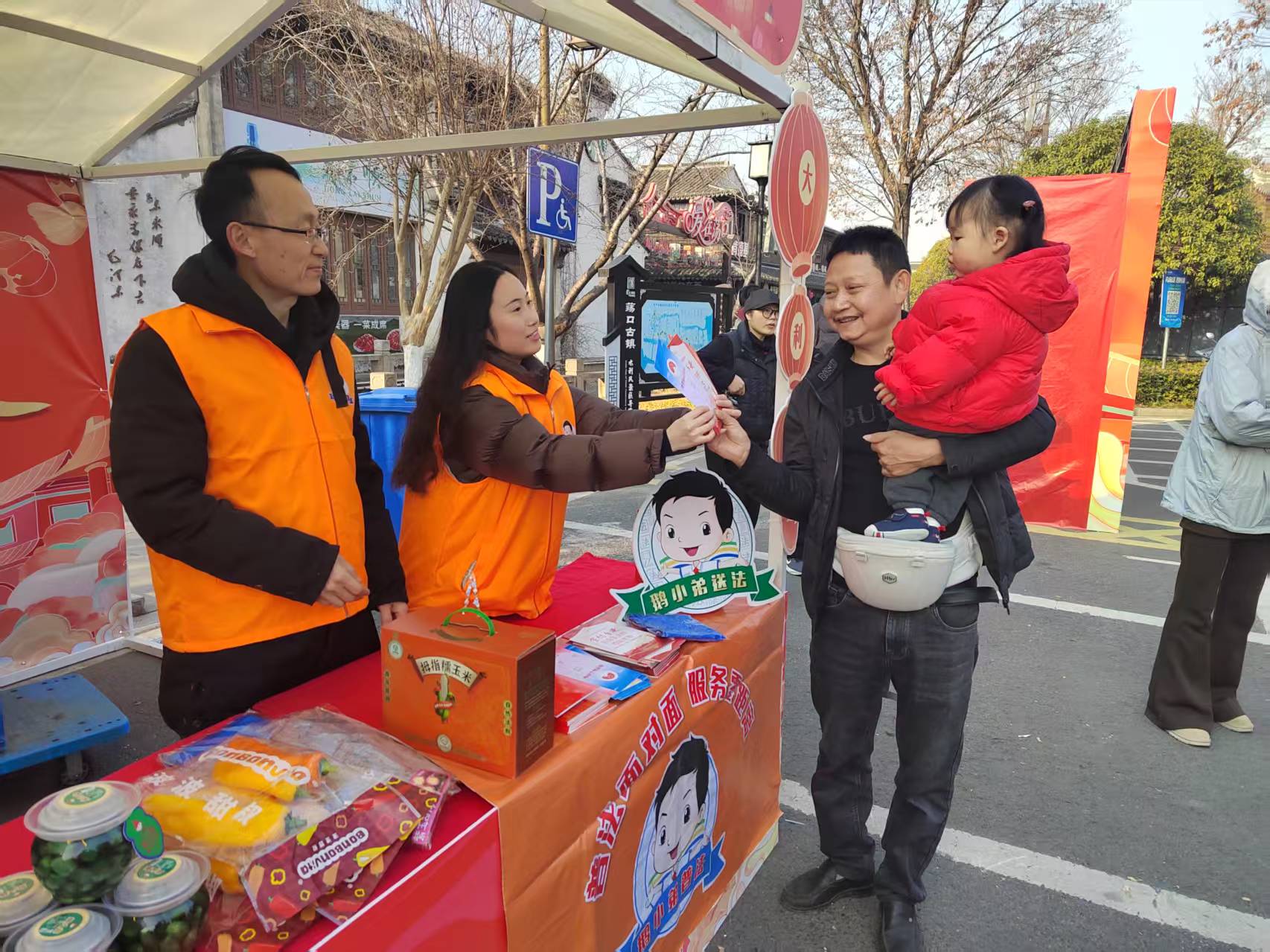 随着无锡锡山区鹅湖镇鱼塘中第一网甘露青鱼跃出水面,鹅湖50余家特色农产摊位组成的年货大集热闹开启。“鹅小弟”法治服务团在市集设立流动法律服务站,专门为青鱼摊主开展了国家地理标志专项普法,现场详解《地理标志产品保护办法》核心条款,结合案例提醒商户警惕“仿冒包装、混淆销售”等侵权行为,手把手指导商户通过合法途径维护品牌权益,让这场充满江南年味的盛会,既飘着市井烟火气,更透着法治安全感。