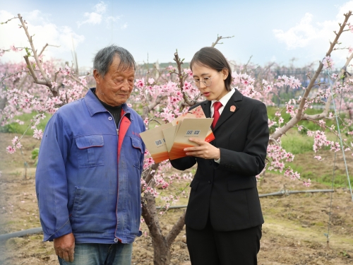讲座结束后,法官走进桃园,向桃农们发放普法宣传手册,耐心倾听他们在桃林规划、桃树种植、桃果销售等过程中遇到的法律困惑,引导桃农运用法律武器维护自身合法权益。