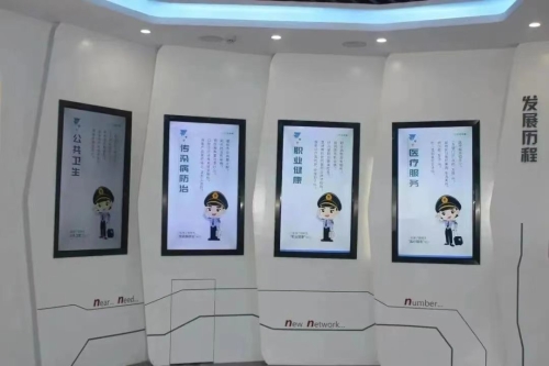 卫生健康数字普法基地依托联通5G多功能展厅,围绕与百姓日常生活密切相关的卫生健康法律法规知识,打造涵盖医疗服务、职业健康、传染病防治、公共卫生和县区之窗五个板块的四大主题内容。展厅内充分运用24块多媒体大屏,通过动画普法、漫画释法、微课说法等生动有趣的形式向社会公众普及卫生健康知识及相关法律法规。展厅内还精心布置了实物展示区,看一看辨别合格与不合格的消毒产品;扫一扫了解集中消毒餐具的抽检合格情况;找一找净水机的合格标签;穿一穿放射防护用的铅衣铅帽;试一试职业病防护需要的护目镜、防噪声的耳塞等……