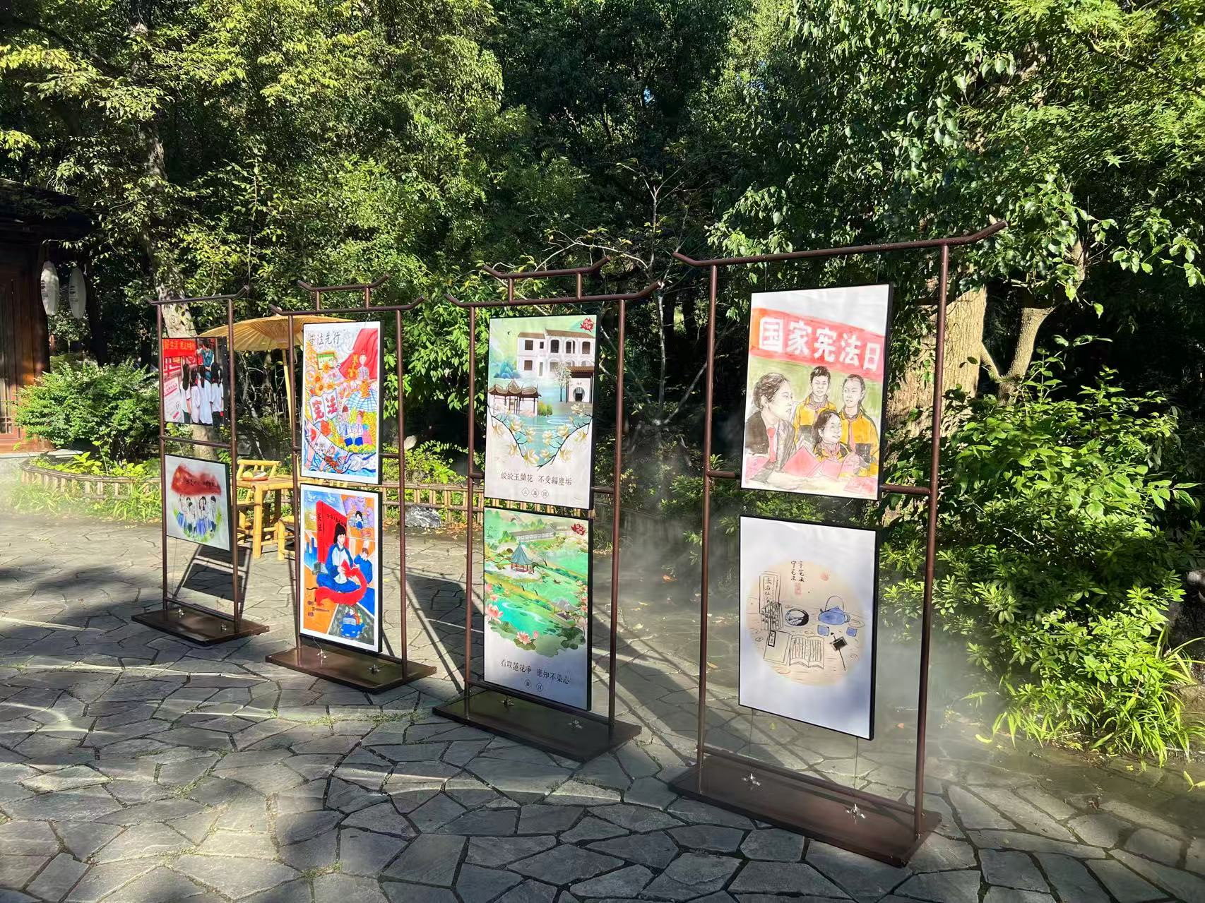 巧妙设计载体,传递丰富的法治内涵。滨湖区依托辖区内的心灵度假胜地拈花湾的独特优势,在其核心景点鹿鸣谷内,以青山绿水为背景,用蜿蜒曲折的青苔石板路巧妙串联起法治小径和法治微景观。沿途布置了百余个以法治小故事为内容的法治风铃,主景观内放置的“有度”法治文化宣传石,以及悬挂“知为”匾额的法治文化亭,在山水间依次呈现。曲径通幽处,法治文化浸润之旅徐徐展开,给人以心灵的震撼和启迪。不远处的法治大礼堂内,大屏幕上滚动播放着法治吴歌及普法宣传微视频,两侧陈列着法治精微绣、法治泥塑和法治香囊等精美的法治文化作品,宣传栏上张贴着法治宣传图文海报插画。通过观法景、行法路、听法课,游客可沉浸式体验法治文化景观,丰富的法治元素也吸引着游客主动学法。
