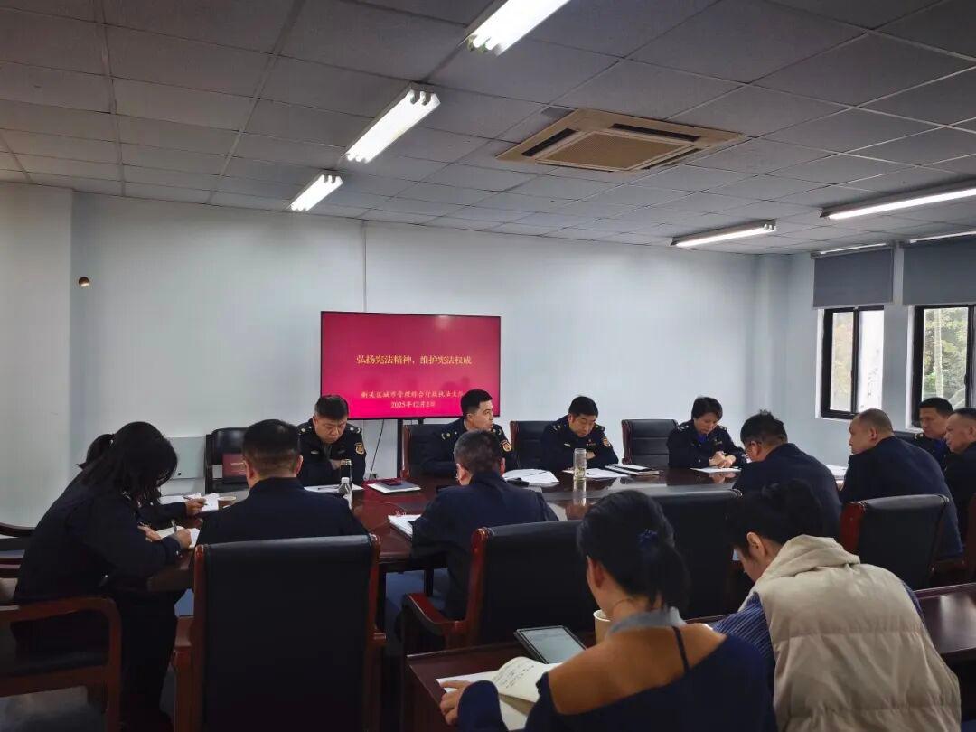 各级城管执法队伍以宪法主题集中学习为切入点,系统研读《中华人民共和国宪法》的核心要义、基本原则和主要内容。学习过程中,创新引入“案例研讨”环节,围绕近期城市治理难点展开深入交流,将宪法条文与城市管理实践紧密结合,有效提升了干部职工运用法治思维解决问题的能力。同时,积极宣传贯彻新实施的《中华人民共和国法治宣传教育法》,引导干部职工深刻认识法治宣传的重要性,明确普法责任,进一步增强宪法意识、法治观念和依法履职能力。