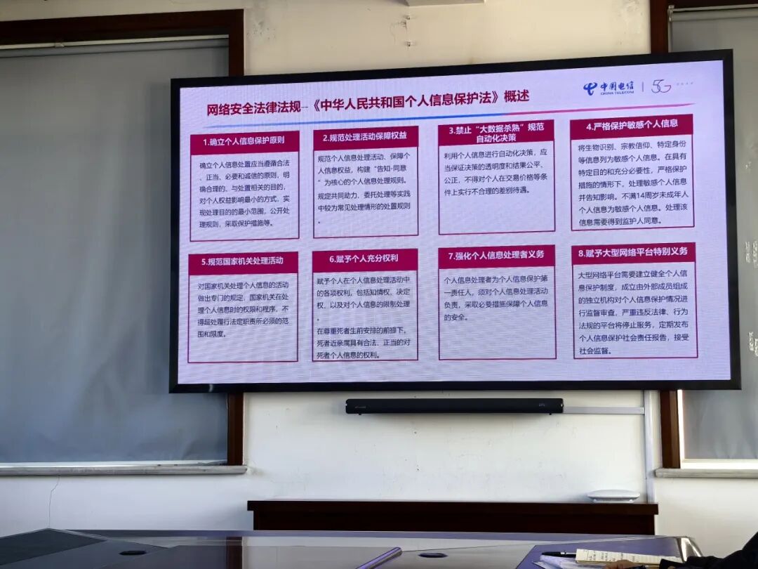 本次活动邀请无锡电信工程师王岩进行专题授课。王工重点围绕网络安全形势、典型网络安全事件、法律法规及风险防范开展系统讲解。培训中,王岩首先分析了当前国内外网络安全面临的复杂严峻形势,并结合近年来发生的典型网络安全事件案例,深入剖析了事件成因、影响及应对方案。随后,对《中华人民共和国网络安全法》《中华人民共和国数据安全法》《中华人民共和国个人信息保护法》及《关键信息基础设施安全保护条例》等法律法规进行了细致解读。他还通过生动实例,阐述了常见网络攻击手段、社交工程诈骗、钓鱼邮件识别等实用知识,提醒全体党员要时刻保持警惕,提高安全素养,做到网络安全始于心、践于行。会后,全体党员还自学了《中国共产党党员网络行为规定》全文。