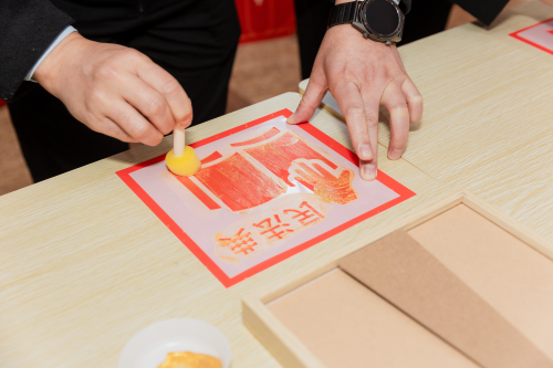 活动伊始,一场别开生面的法治主题手工拓印体验率先登场,瞬间点燃了现场氛围。来自区纪委监委机关、区委宣传部、区委区级机关工委、区司法局、区妇联、区科协等单位的相关领导拿起拓印工具,蘸取颜料,拓印法治主题图案。“法治”“民法典”“宪法在我心中”等字样在颜料轻压间渐次浮现,随后被精心装裱成富有仪式感的法治主题画。一幅幅色彩鲜明、寓意深刻的拓印作品,不仅将法治精神定格在纸上,更让传统手工技艺与法治文化深度融合,增添了浓厚的文化底蕴与法治气息。